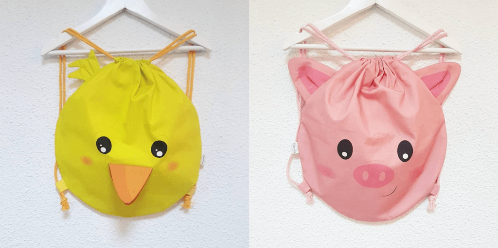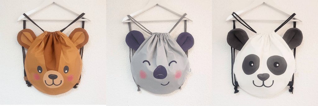 Las mochilas de animales son 100% Pequetú, ya que empezó como una idea, y tras diseñarlas con programas de ilustración y mandar imprimir la tela con las imágenes de animales… ¡solo quedaba cortar las telas y ponerse a coser!